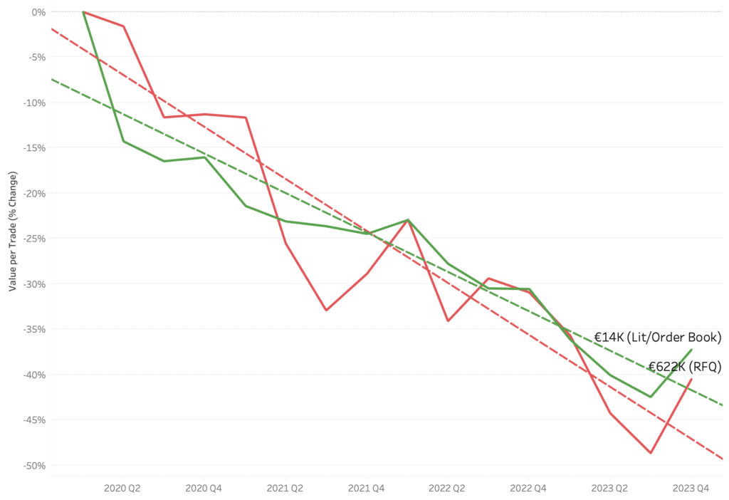 Chart 2 – Change of Average Trade Size for CLOB and RFQ Venues (since Jan 2020)