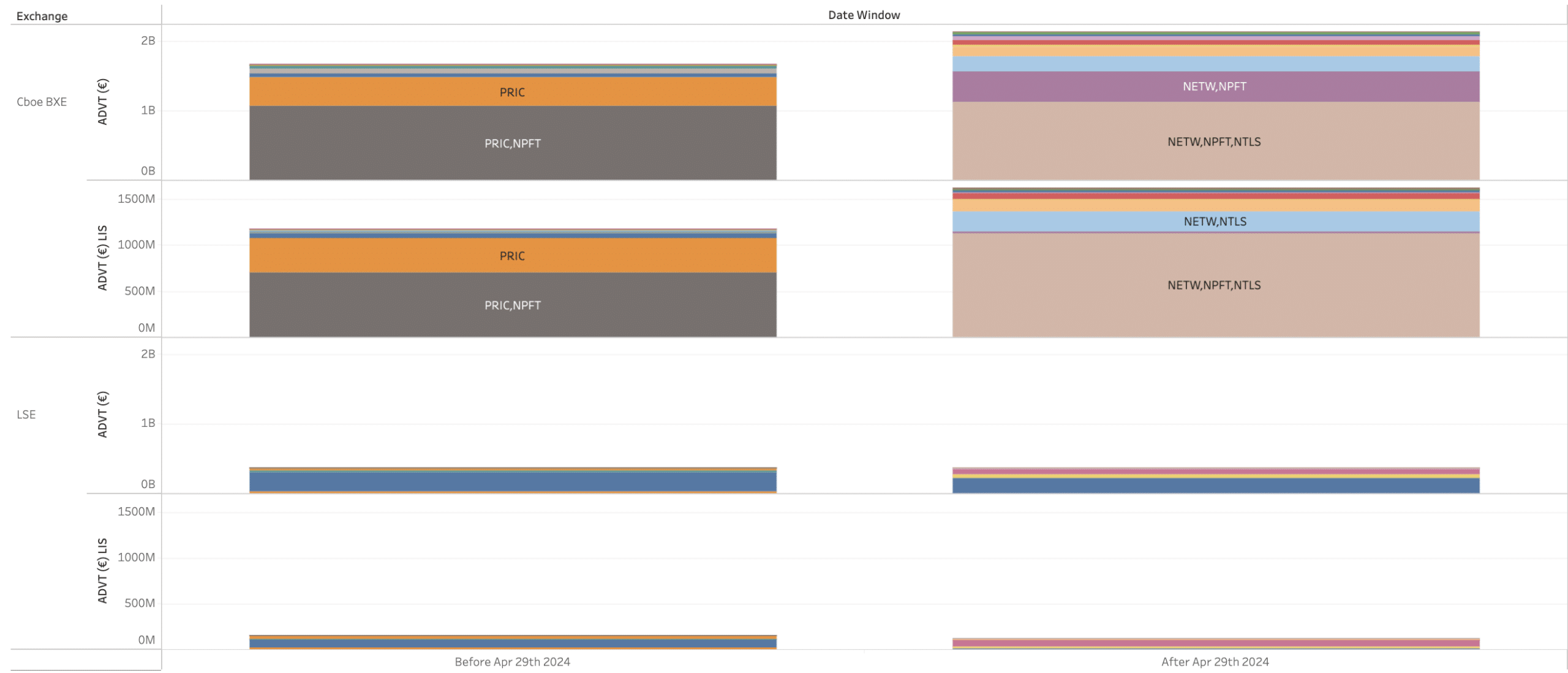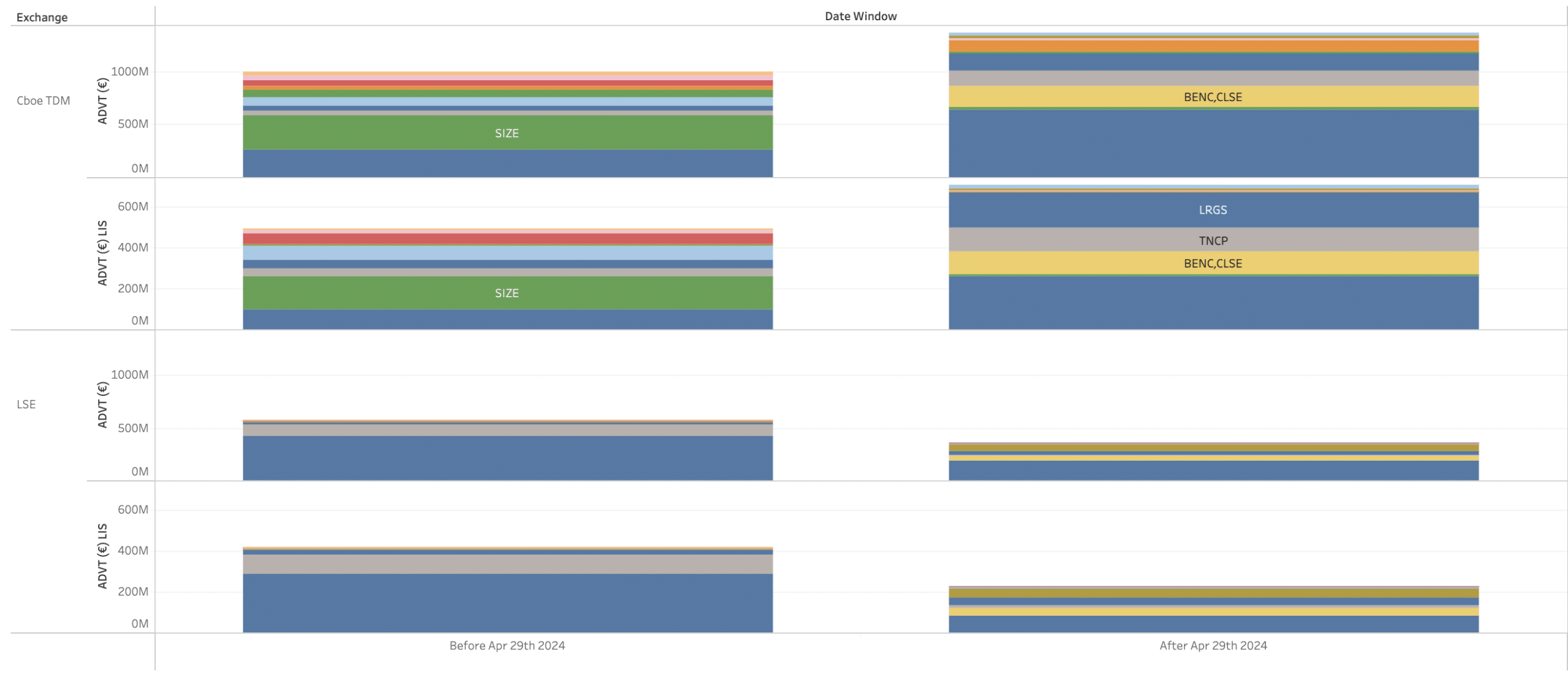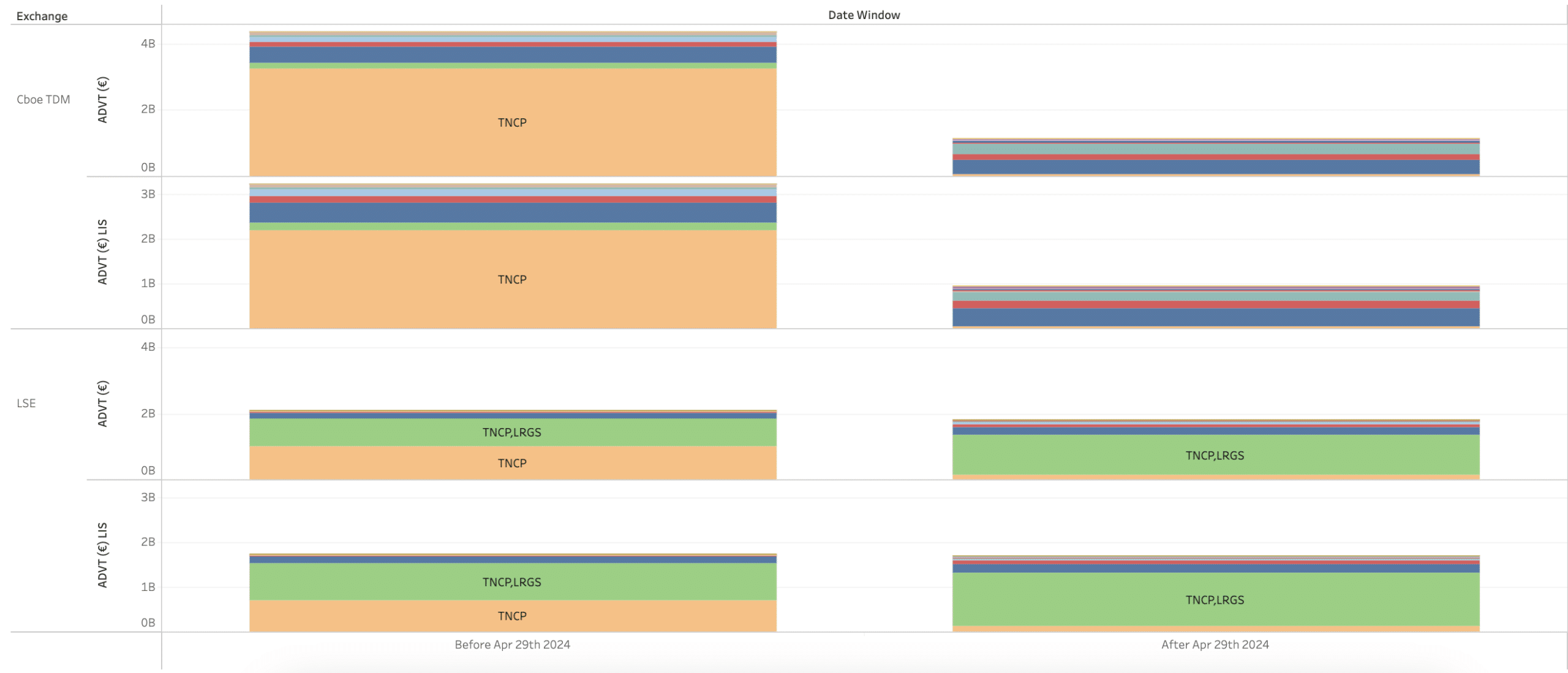 The off book/OTC trade categories are now better described to help transparency but you still need a black belt in data analytics to sort the wheat from the chaff, as you can see in the following three charts showing the before and after effect of the regulatory change across three reporting mechanisms.