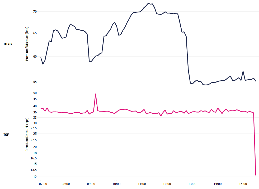 - Premium/discount dynamics – ETF algo features can work orders based on premium/discount metrics (see Chart 2 below)