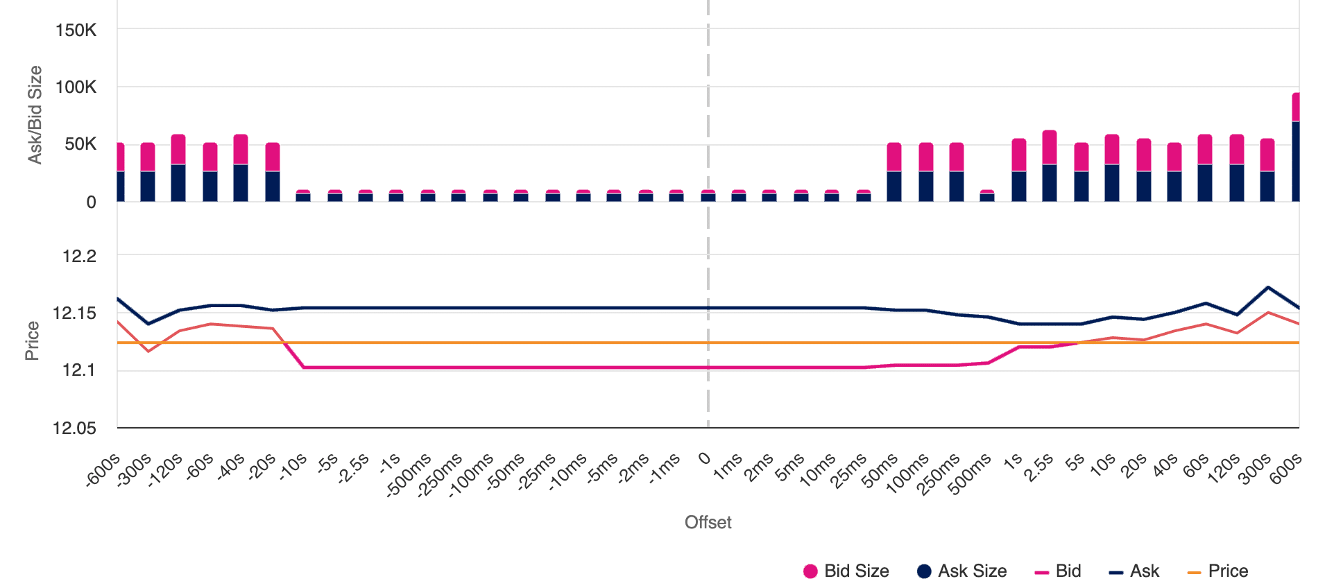 Chart 3: Price Impact and Reversion: Comparing Execution Price to BBO Over Time