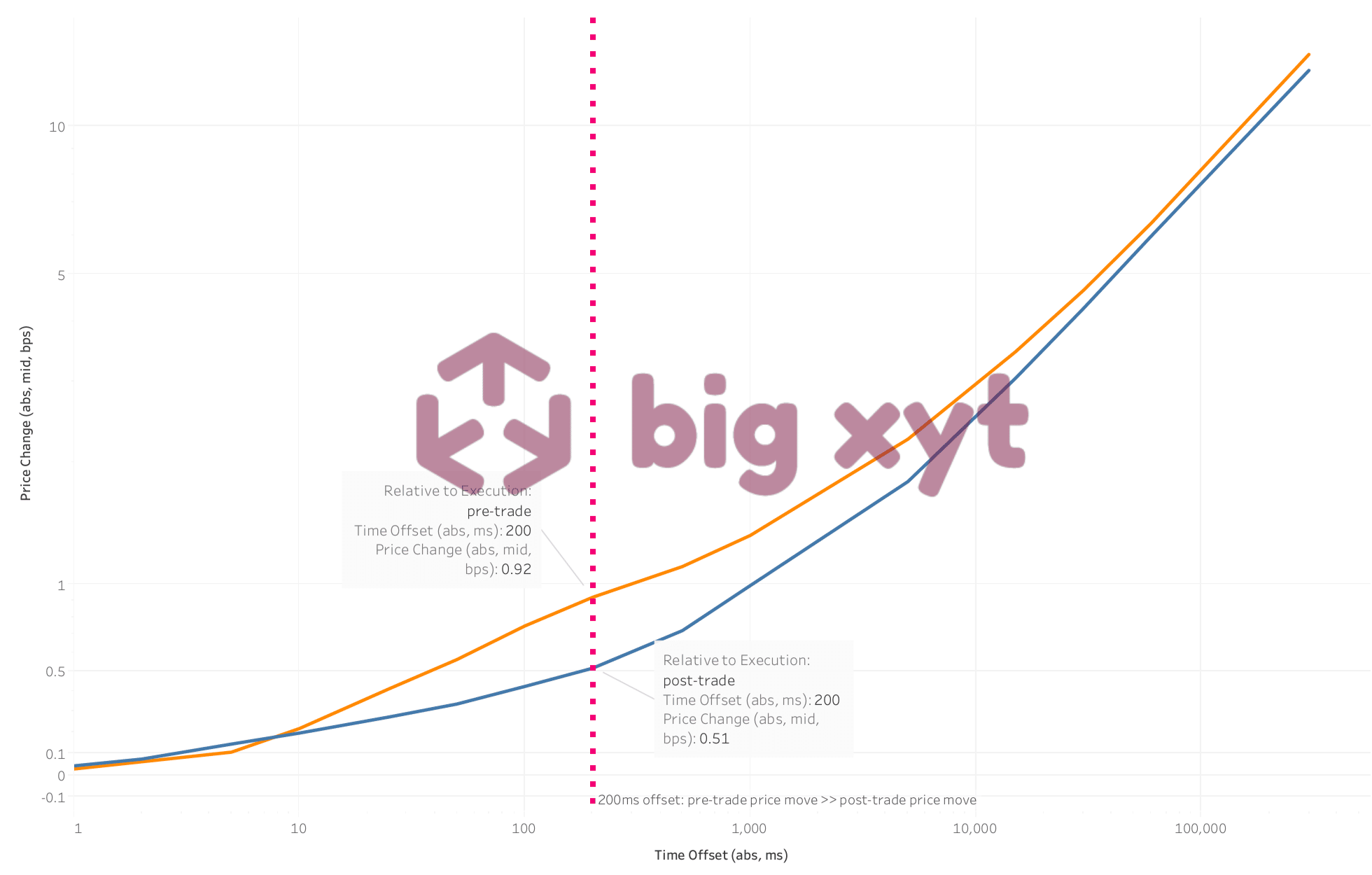 The new measure is a tool that can help the community to answer existing and upcoming questions, e.g. compare characteristics of liquidity pools (blocks, Sis, frequent batch auctions) over time or to benchmark their own executions (single broker or multi-broker). Reach out to big xyt for a trial of our execution analytics.