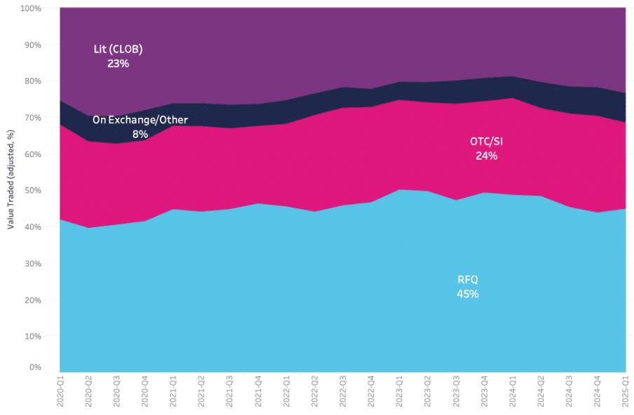 According to data from big xyt, there are changes in the market microstructure, notably lit markets are gaining traction.