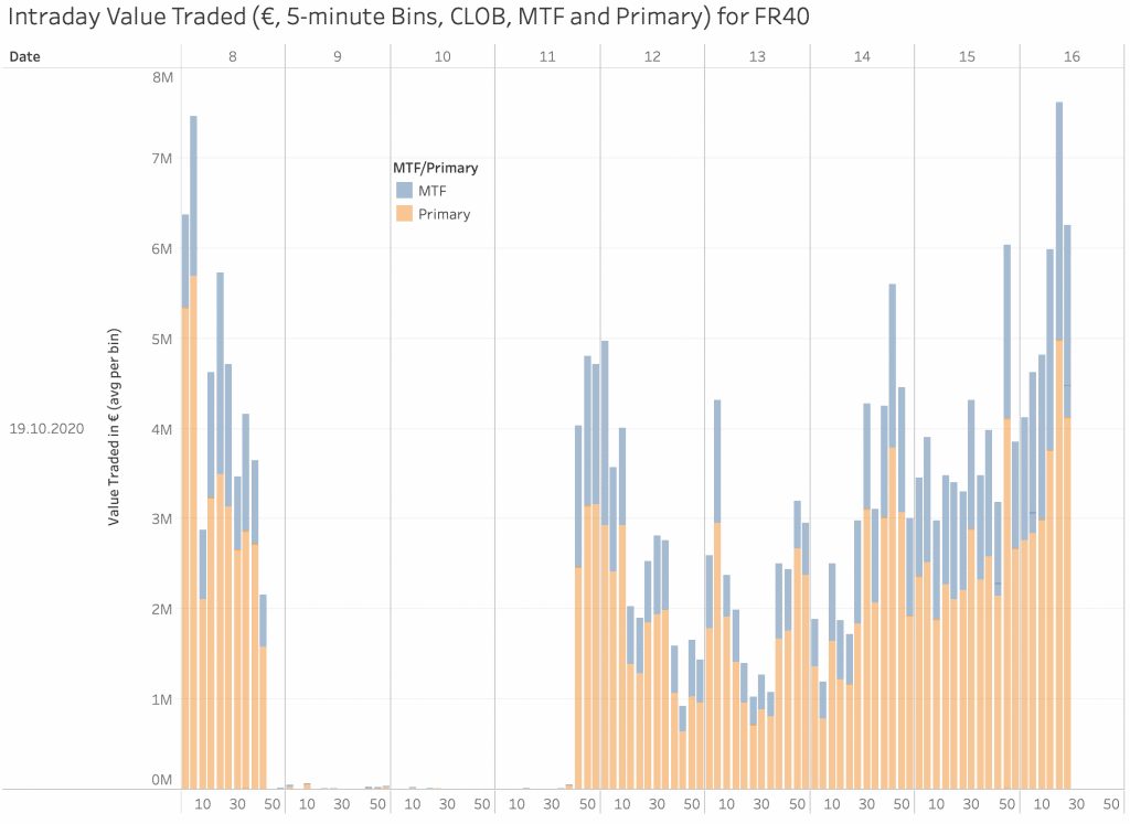 We can observe clearly what happened and exactly when. We can see in granular detail what happens when trading restarts and algos try to catch up. What we struggle to do is explain whether this behaviour is a result of the the end liquidity provider’s reluctance, the trading intermediaries’ reluctance, or the trading engines’ reluctance to trade. For a market thriving on risk and return it is clear that few are brave (or foolish) enough to be the first mover.
