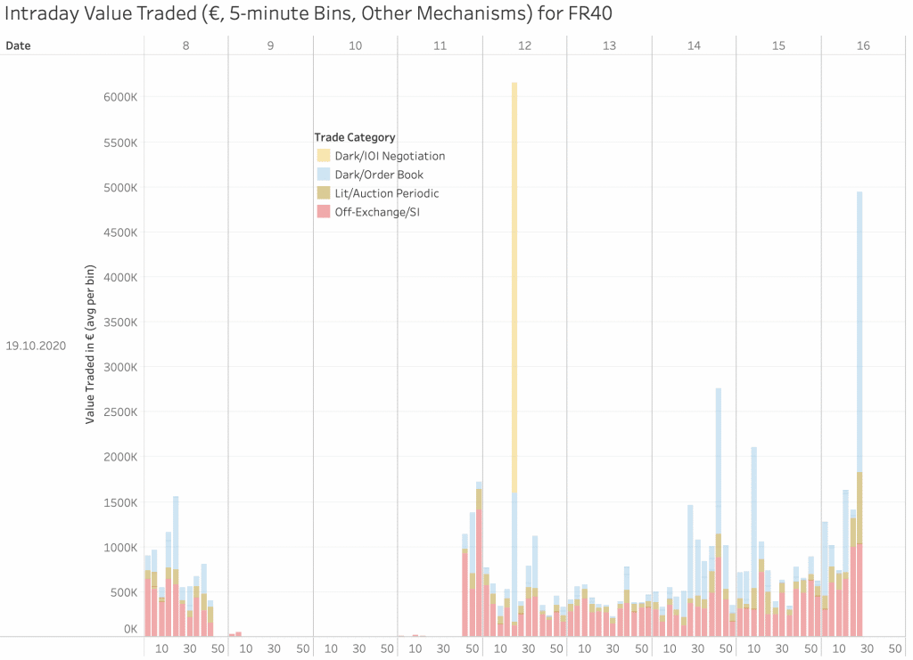 These other venues and mechanisms compete happily for market share all day, everyday, and yet when the very entity they are looking to compete with sneezes, they all reach for their own hankies in unison. The contagion goes beyond lit order books. Periodics Auctions or FBAs, Dark Pools and SIs all promoted as the new alternatives for low impact trading….except as you will see from our second chart, they too stopped trading.